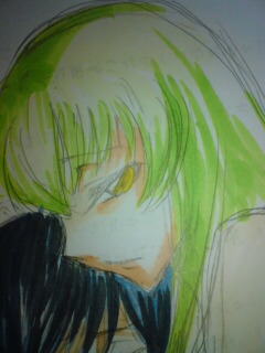 例の歌を聴いたときにカッとなって描いた絵を塗ってみた